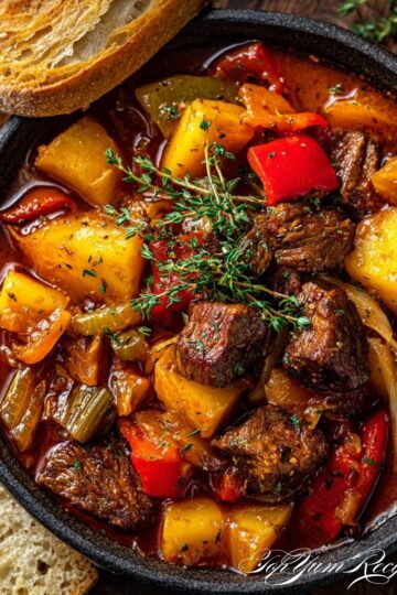Hearty Beef Stew Goulash with Tender Meat, Veggies & Rich Broth