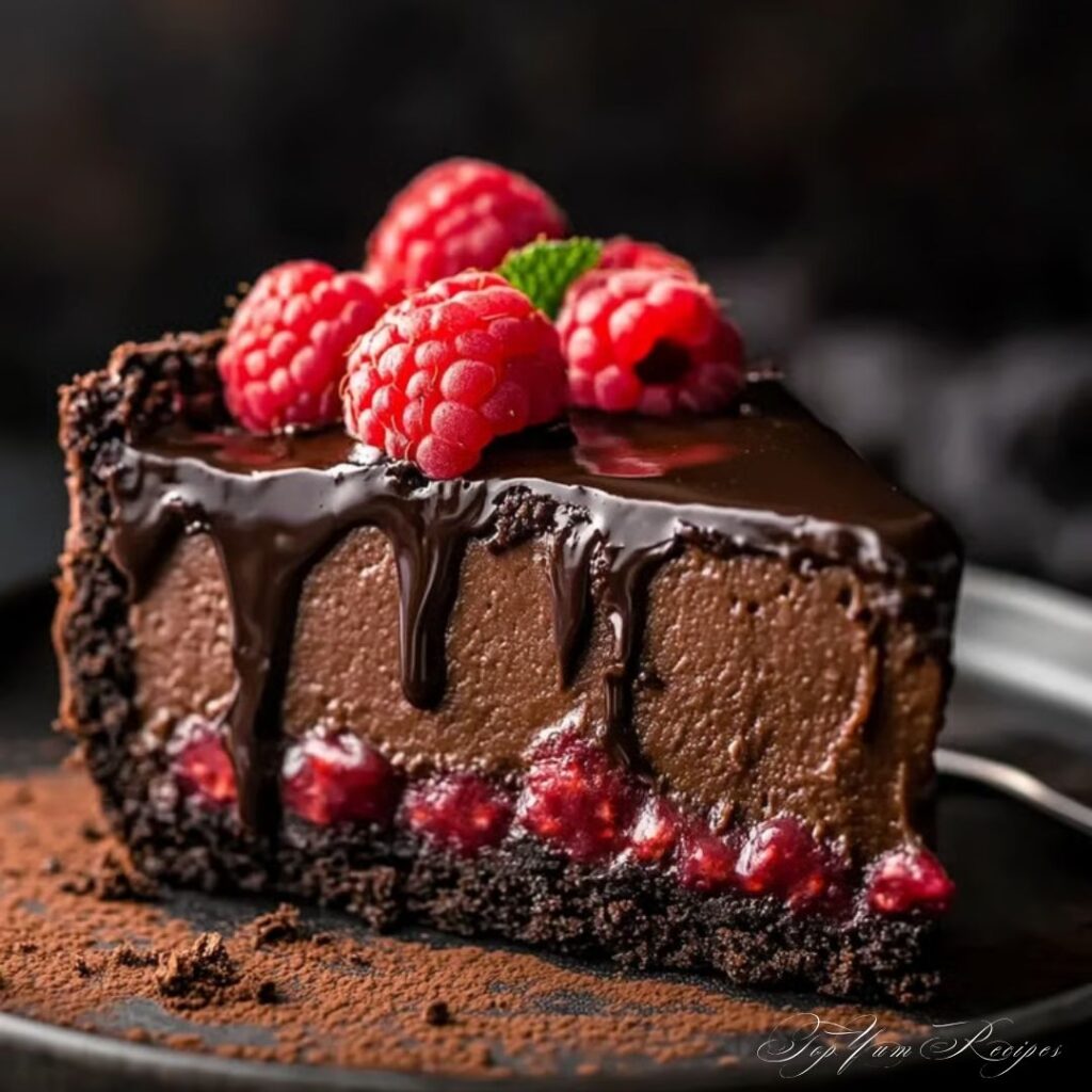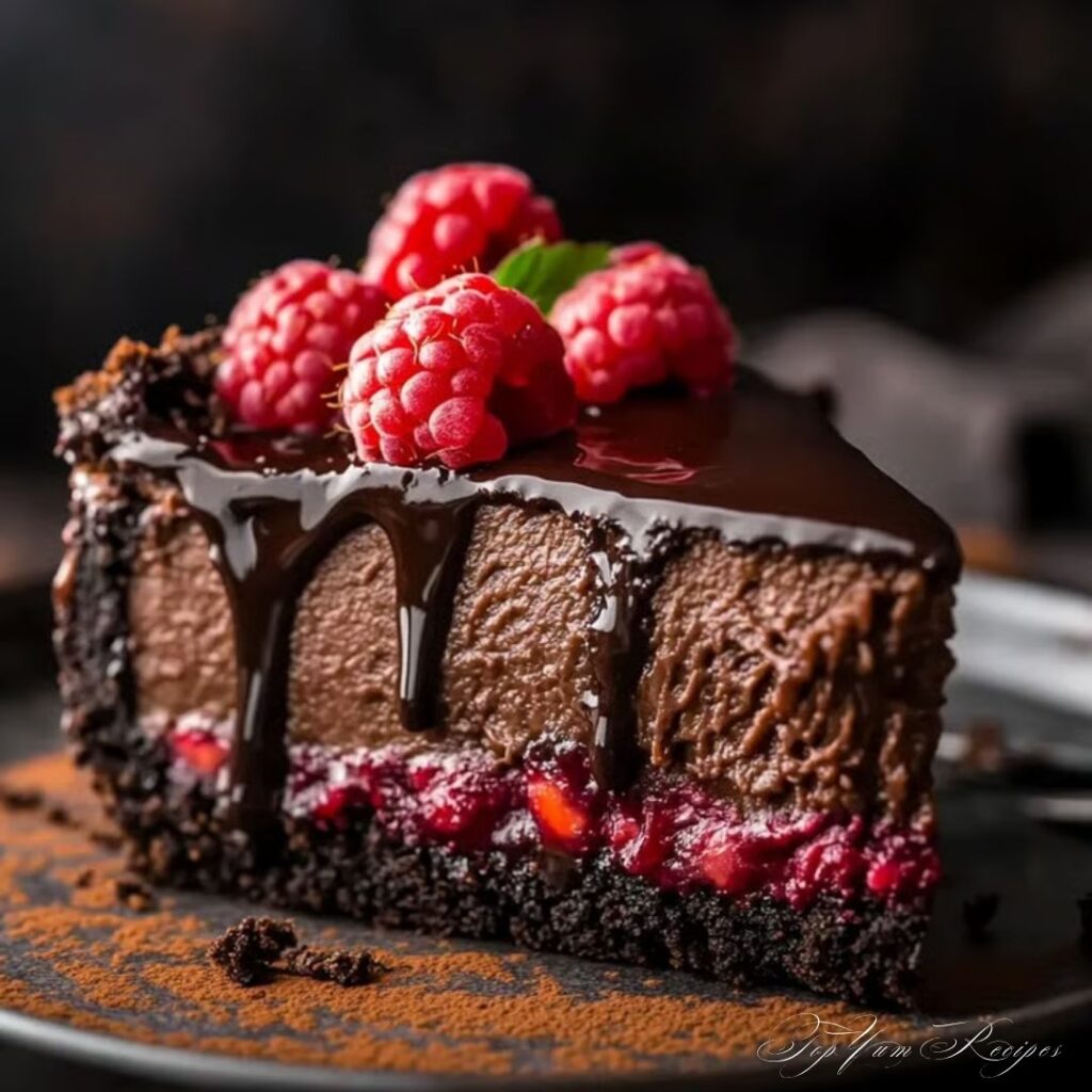 Picture this: a buttery chocolate crust, a rich layer of dark chocolate cheesecake so silky it practically melts, and a topping of ruby-red raspberries that balance every bite with tart freshness. You don’t just eat this dessert — you savor it. Whether you’re baking it for a celebration, a romantic evening, or a quiet weekend treat, it’s one of those recipes that never fails to impress.