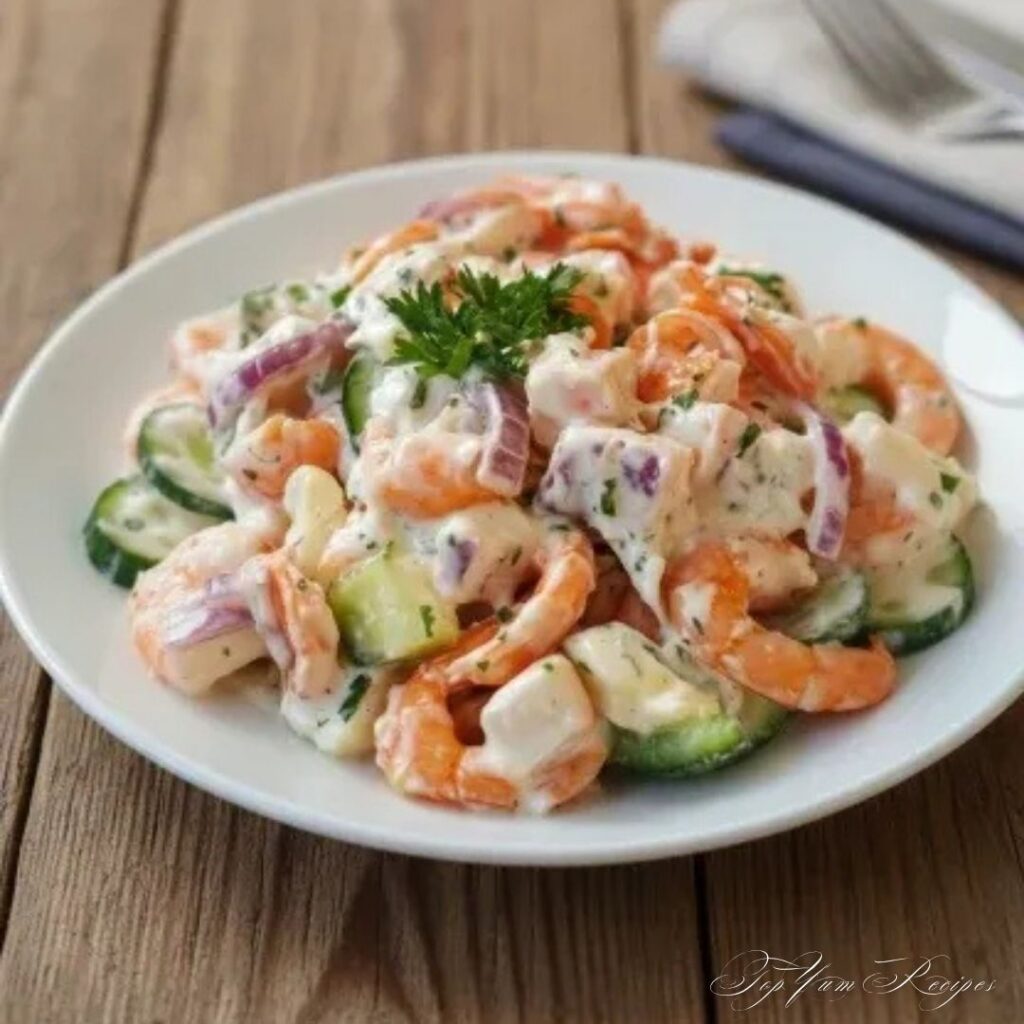 This Fresh & Zesty Seafood Salad is light, refreshing, and bursting with coastal flavor. It’s the perfect balance of tender seafood, crisp vegetables, and a tangy lemon-herb dressing that brightens every bite. Whether you serve it chilled as a main course, a side dish, or a light lunch, this salad tastes like summer by the sea.