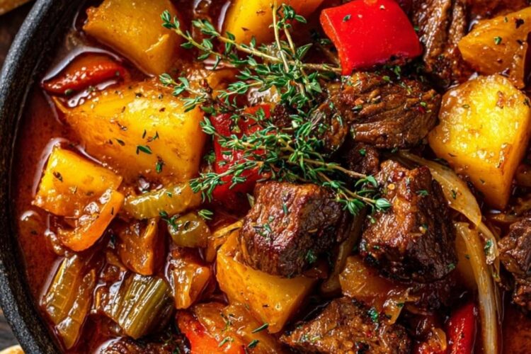 Hearty Beef Stew Goulash with Tender Meat, Veggies & Rich Broth
