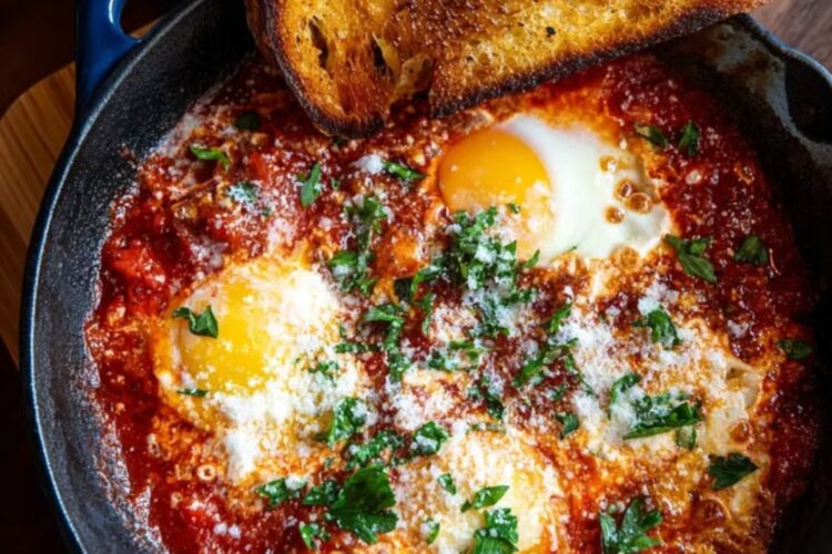Eggs in Purgatory is one of those meals that feels both comforting and impressive, yet it comes together with simple pantry staples. Fresh eggs are gently poached in a garlicky, spiced tomato sauce, finished with fresh herbs and a sprinkle of cheese. Scoop it straight from the skillet with toasted bread, and you’ve got breakfast, brunch, or even a light dinner that everyone will love.